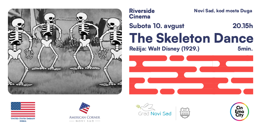 Osim The Skeleton Dance, od 20.15 će biti prikazana još dva animirana filma: Oswald the Lucky Rabbit in Trolley Troubles i Steamboat Willie, a nemojte propustite ni projekcije prethodnog dana, 9. avgusta: The Godfather (1972, Francis Ford Coppola) u 20.30 i The Birds (1963, Alfred Hitchcock) u 23.30.